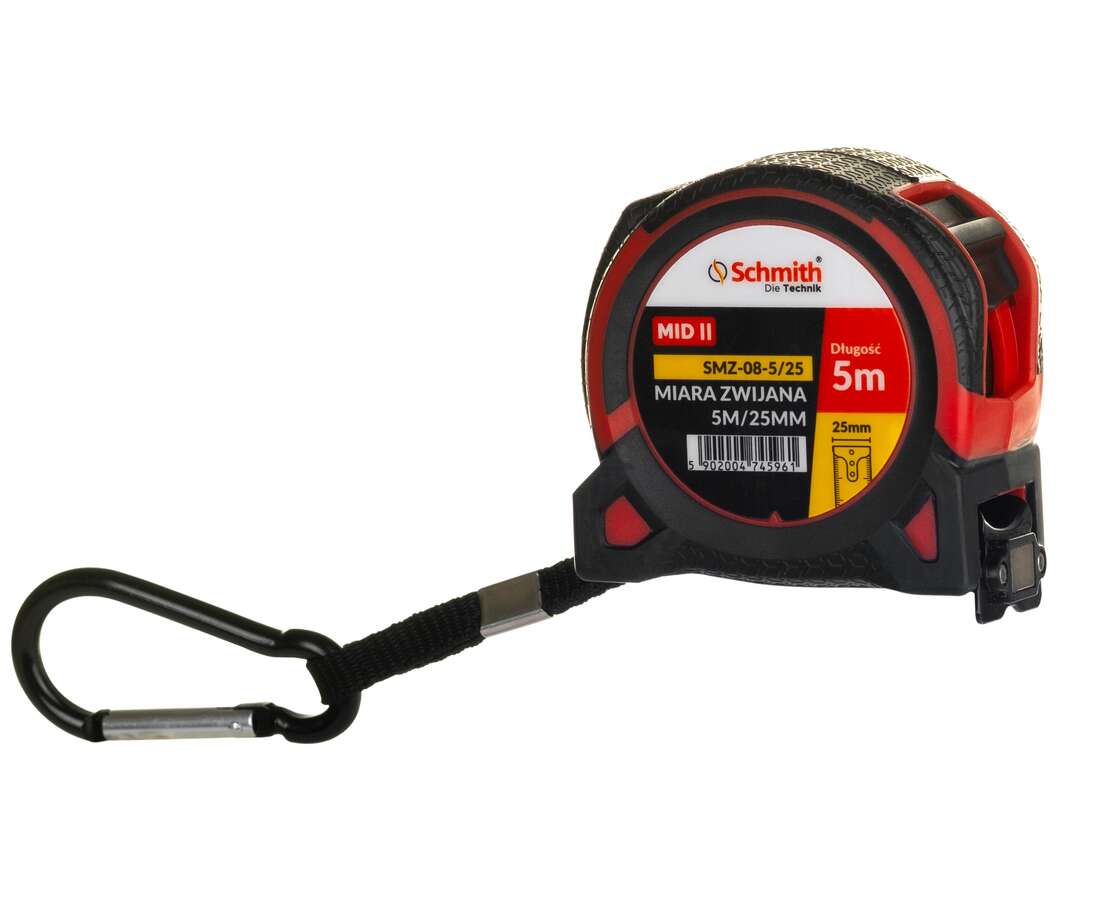 Obudowa z materiału ABS + TPE- odporne na uderzenia. Posiada praktyczny zaczep do paska oraz pasek zakończony karabińczykiem. Obustronna taśma miernicza o standardzie CE MID II o wyraźnej, dużej podziałce, zakończona hakiem magnetycznym, odporna na ścieranie. Podział na cm i mm po obu stronach taśmy. Automatyczne cofanie taśmy. Stoper do zatrzymywania i blokowania cofającej się taśmy.